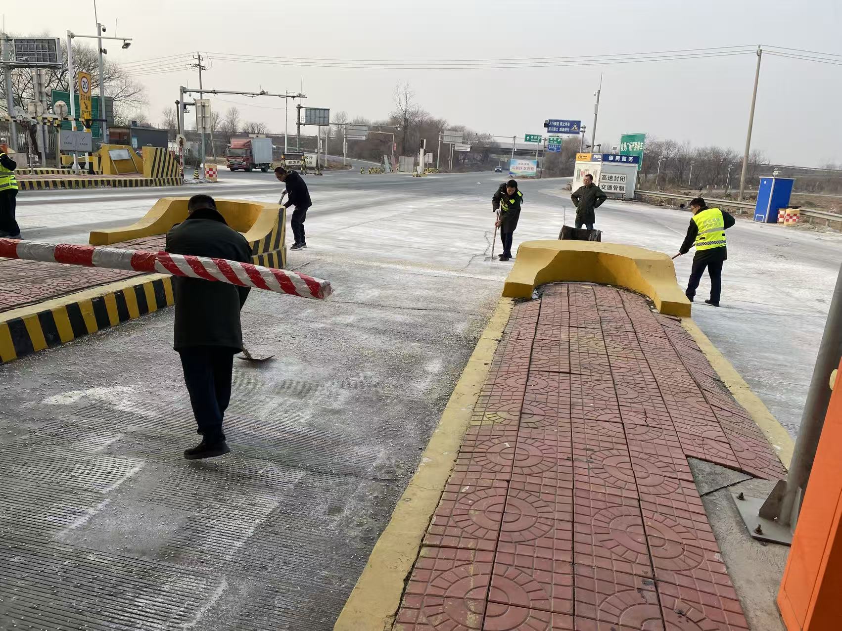 行動(dòng)中,黨員干部率先垂范、沖鋒在前,手持鐵锨直奔結(jié)冰最頑固的安全島頭區(qū)域,彎腰揮鏟破冰除障,以實(shí)際行動(dòng)帶動(dòng)全員干勁。在黨員干部的引領(lǐng)下,在崗人員迅速集結(jié),手持鐵锨、掃帚、冰鏟等工具組成攻堅(jiān)隊(duì)伍,分工明確、協(xié)同作戰(zhàn)。大家頂著寒風(fēng),有的用鐵锨奮力撬動(dòng)厚實(shí)積冰,有的用冰鏟細(xì)致鏟除邊緣碎冰,有的用掃帚徹底清理殘留冰渣,對(duì)安全島頭、車道接縫、收費(fèi)窗口周邊等易結(jié)冰、易藏污的關(guān)鍵區(qū)域反復(fù)清理、細(xì)致排查,確保不留一處死角、不存一處隱患。寒風(fēng)中,熒光綠的身影在車道間來(lái)回穿梭,全體職工并肩作戰(zhàn)、干勁十足,連續(xù)奮戰(zhàn)數(shù)小時(shí),徹底清除所有結(jié)冰隱患,讓車道恢復(fù)安全暢通,以整潔有序的站區(qū)環(huán)境迎接新春佳節(jié)。