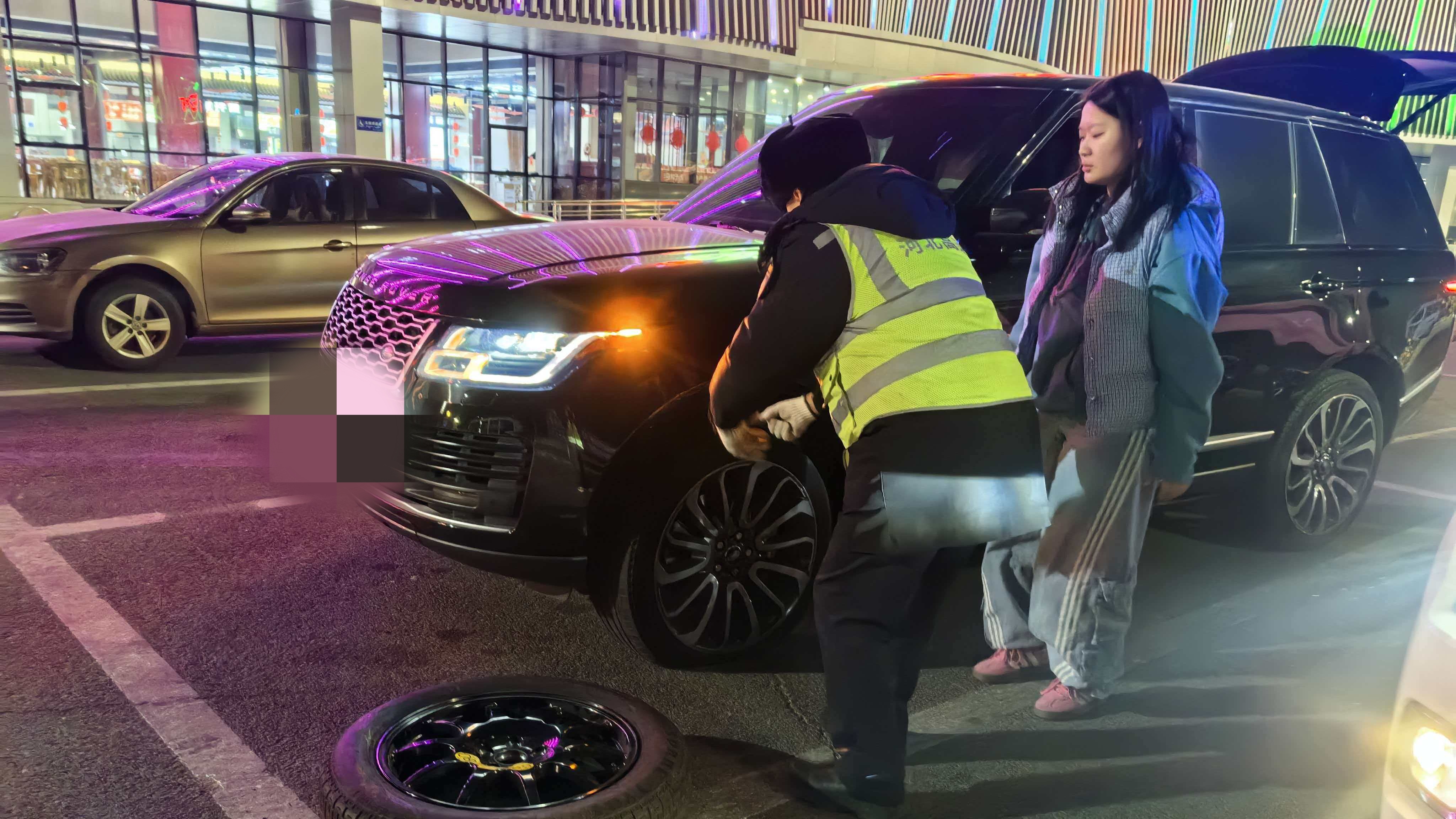 2月11日21時許,香河保通保暢應急大隊隊員夜間巡邏至香河服務區(qū)附近,發(fā)現(xiàn)一輛黑色SUV打著雙閃??吭诼愤?,司機正焦急地站在車旁,手足無措。隊員立即上前詢問,得知車輛因輪胎虧氣無法正常行駛,而司機又未能找到備胎,一時陷入困境。