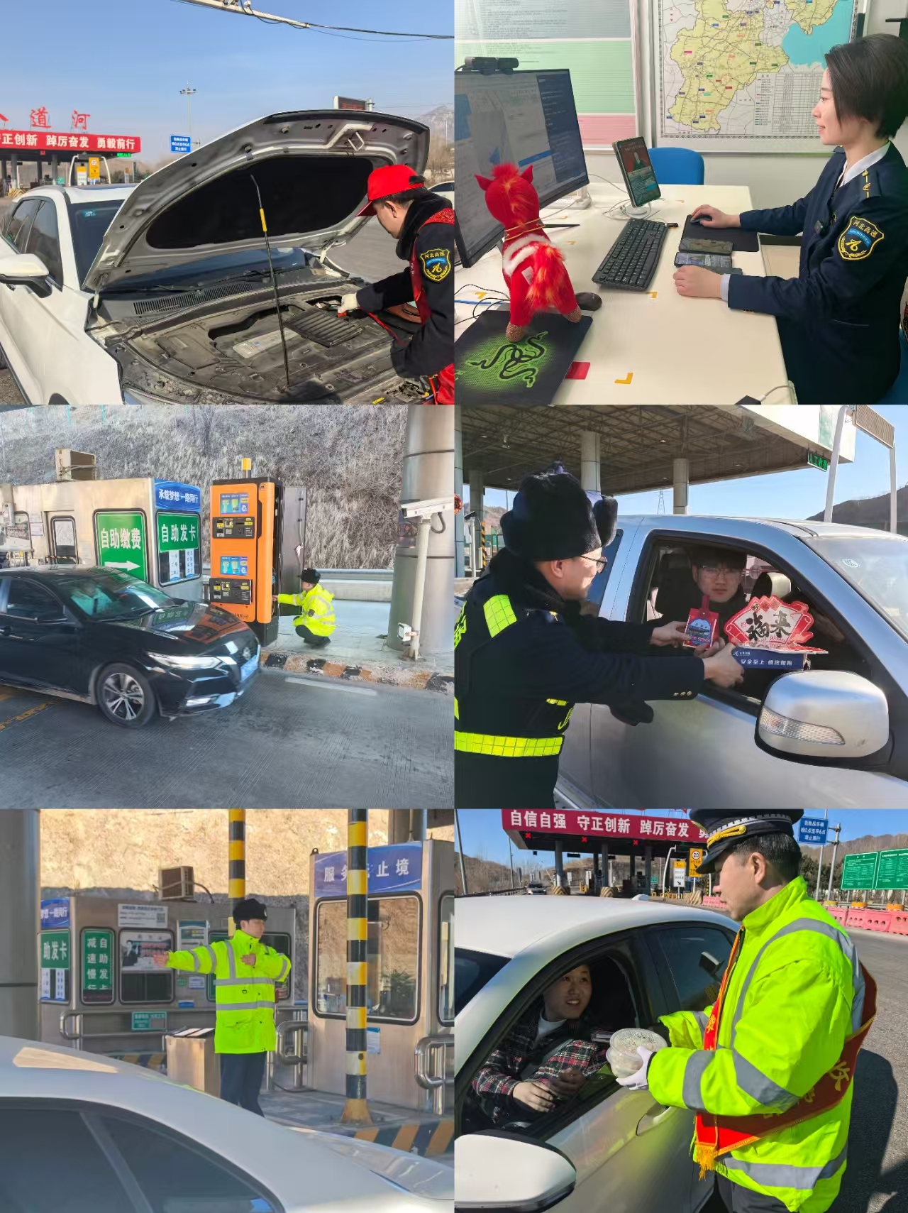 在筑牢安全保暢防線的基礎上,分公司深耕服務內涵,讓春運旅途更有溫度。各收費站結合實際推出特色便民舉措,讓司乘在奔波中感受新春暖意:八道河收費站為過往司乘送上熱氣騰騰的餃子,撫寧北收費站精心整理周邊草莓采摘園等休閑點位信息,提供精準路線指引,茨榆山收費站為司乘發(fā)放寓意甜蜜的糖包與新春祝福。此外,各站點均常態(tài)化備齊熱水、應急藥品、維修工具等便民物資,全力為司乘排憂解難。