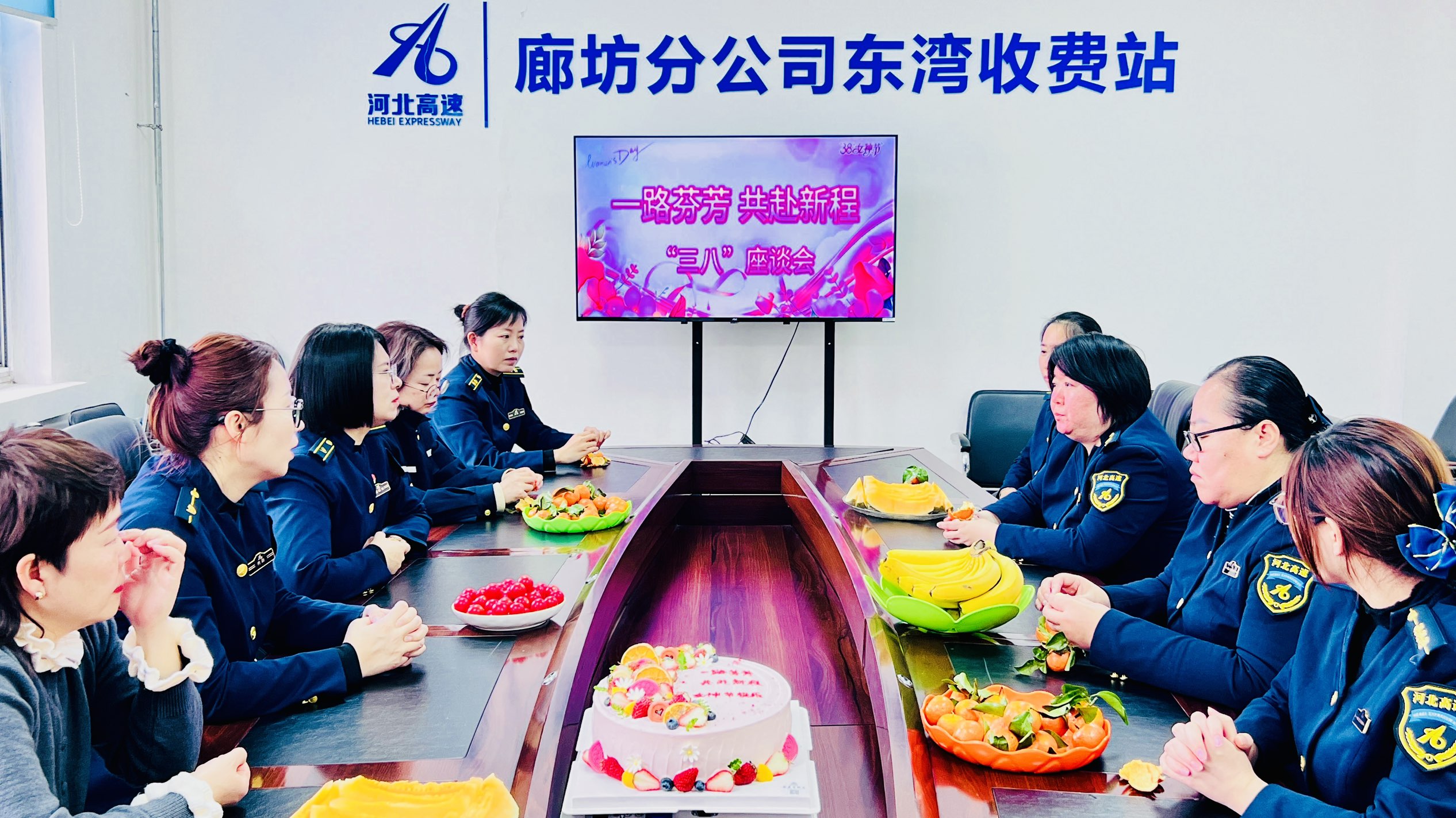 “提前祝大家節(jié)日快樂!”“這段時(shí)間辛苦了!”3月5日,東灣收費(fèi)站會議室內(nèi)暖意融融,一場以“一路芬芳 共赴新程”為主題的“三八”婦女節(jié)座談會正在舉行,全站女職工圍坐在一起,聊工作、談生活、話成長。