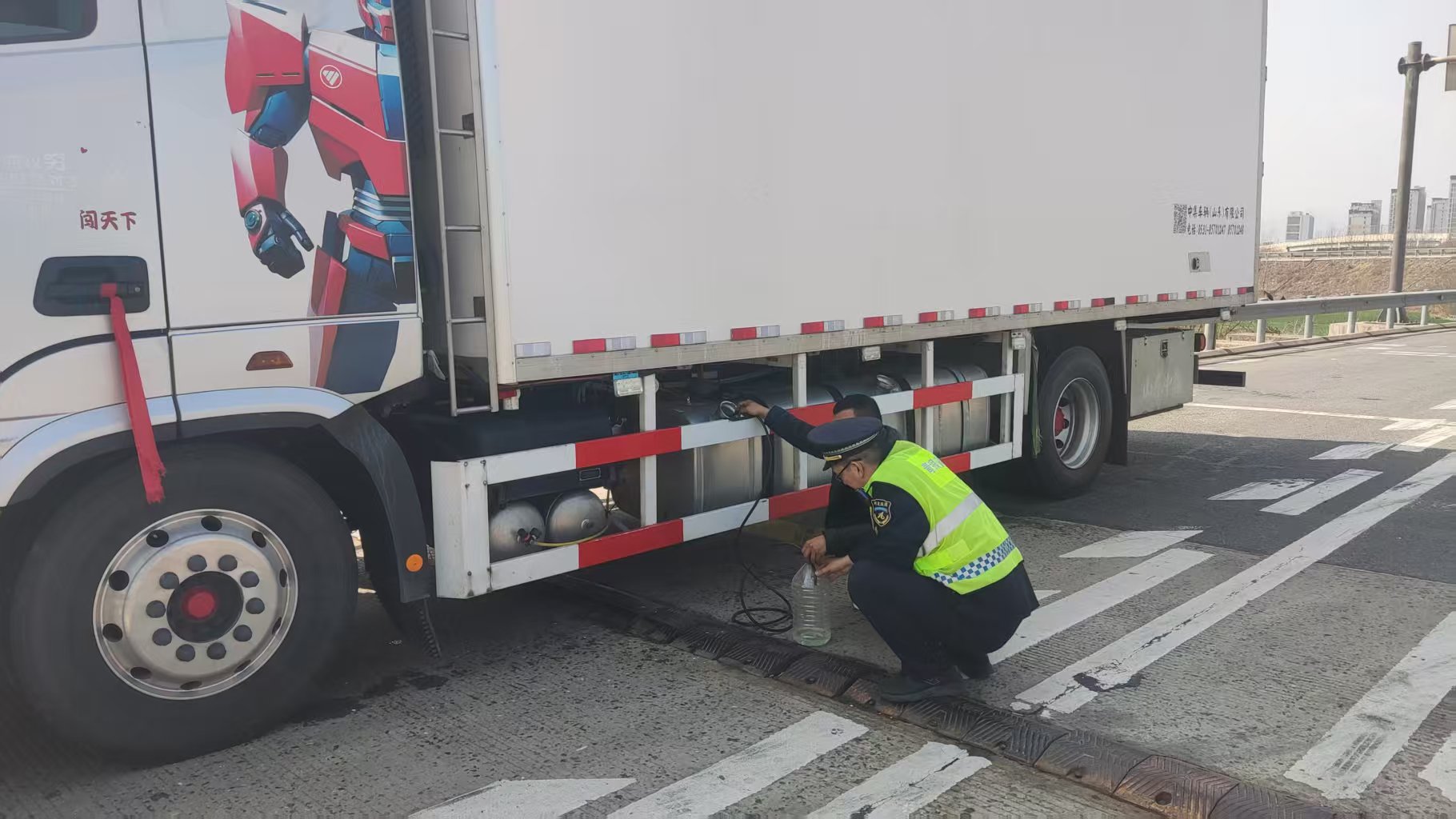 收費站工作人員立即開啟緊急救助模式,在車后設(shè)置反光錐警示,同步疏導(dǎo)后方車流,在確保安全前提下,利用軟管等簡易工具手動抽取燃油,成功為貨車完成臨時補給。補給完成后,工作人員主動告知駕駛員附近加油站的具體位置和最優(yōu)路線,確保其順利抵達(dá)加油。