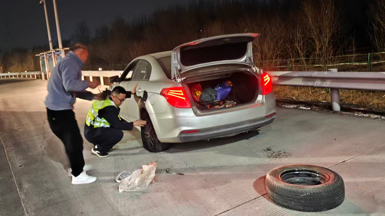 整個(gè)救援高效有序,不到二十分鐘,備胎便安裝到位。班長(zhǎng)隨后仔細(xì)檢查了其余三條輪胎的氣壓和狀況,確認(rèn)無(wú)異常后,叮囑司機(jī)備胎不可長(zhǎng)時(shí)間高速行駛,需及時(shí)更換正式輪胎,注意夜間行車安全。