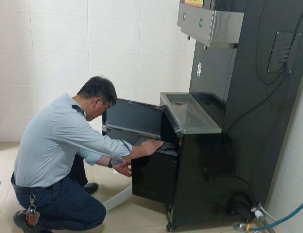 經(jīng)檢查發(fā)現(xiàn),飲水機(jī)供電正常,溫控顯示完好,指示燈無異常,對飲水機(jī)進(jìn)行斷電重啟,但故障無改善,隨后機(jī)電員打開機(jī)箱檢查進(jìn)水管路,發(fā)現(xiàn)由于逐漸積累的水垢導(dǎo)致進(jìn)水管路堵塞,從而導(dǎo)致飲水機(jī)冷水出水異常。隨后,機(jī)電員首先將堵塞的進(jìn)水管路拆下,用醋溶液浸泡,然后用軟毛刷進(jìn)行清洗,最后用水沖洗干凈,并安裝回原部位,并更換了濾芯。經(jīng)過緊張維修,飲水機(jī)恢復(fù)了正常使用。