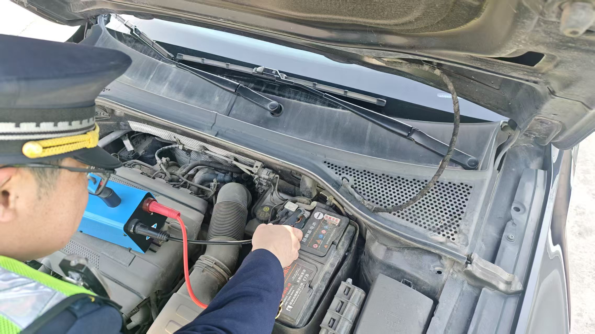 當(dāng)日上午9時許,一輛小型客車??吭谑召M(fèi)站出口廣場,駕駛員神情焦急、四處查看。正在巡查的收費(fèi)班長發(fā)現(xiàn)情況后,第一時間上前詢問,得知車輛因電瓶虧電無法正常啟動。收費(fèi)班長立即拿取應(yīng)急搭電設(shè)備,一邊耐心安撫駕駛員情緒,一邊熟練規(guī)范開展搭電操作。短短幾分鐘,車輛便順利啟動,駕駛員對收費(fèi)站工作人員的快速相助、暖心服務(wù)連連表示感謝。