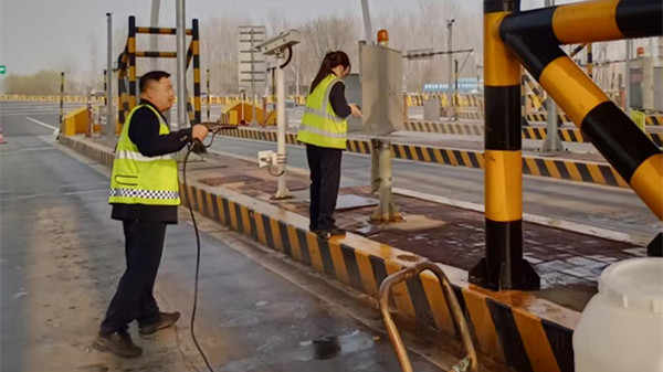 為持續(xù)提升站容站貌,為過(guò)往司乘營(yíng)造干凈、整潔、舒適的通行環(huán)境,香河收費(fèi)站常態(tài)化開展崗?fù)ぜ爸苓叚h(huán)境衛(wèi)生整治工作。工作人員分工協(xié)作、細(xì)致入微,有的手持高壓水槍沖洗地面污漬積塵,有的認(rèn)真擦拭崗?fù)らT窗、收費(fèi)設(shè)備及標(biāo)識(shí)標(biāo)牌,還有的仔細(xì)清理邊溝雜物與衛(wèi)生死角,不放過(guò)任何一處細(xì)節(jié)。從收費(fèi)亭內(nèi)的桌面座椅,到廣場(chǎng)欄桿、監(jiān)控設(shè)施,再到車道地面、隔離墩,均被清理得井然有序、煥然一新。