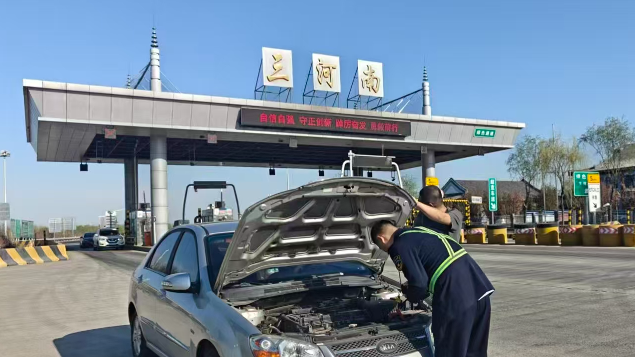 4月7日,一輛小轎車行駛至三河南收費站出口廣場時,因電瓶虧電突發(fā)故障無法啟動,車輛停滯不前,司機手足無措、焦急萬分,隨即向正在入口疏導車輛的收費站班長求助。