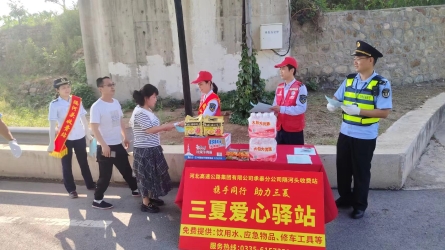 炎炎夏日送清涼,絲絲關(guān)懷沁心田。8月3日下午,隔河頭派出所何會彬、馬志良兩位民警不顧天氣炎熱,冒著高溫酷暑來到承秦高速隔河頭收費站,為夏日里堅守在一線的職工們送來了清甜可口的李子。[詳細]