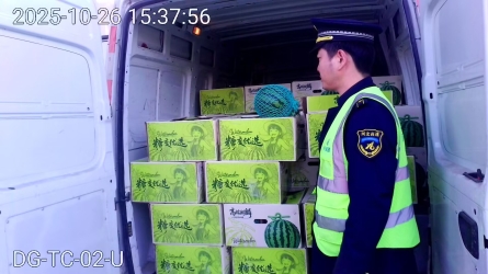 10月26日15時(shí)36分,一輛車(chē)牌號(hào)為豫 DS8*** 的二軸貨車(chē)駛?cè)胩页鞘召M(fèi)站103車(chē)道。司機(jī)稱(chēng)所載貨物為西瓜,申請(qǐng)享受綠通減免政策。班長(zhǎng)與查驗(yàn)人員立即前往車(chē)道,嚴(yán)格按照規(guī)定流程開(kāi)展查驗(yàn),發(fā)現(xiàn)該車(chē)車(chē)貨總質(zhì)量超限5%以上...[詳細(xì)]