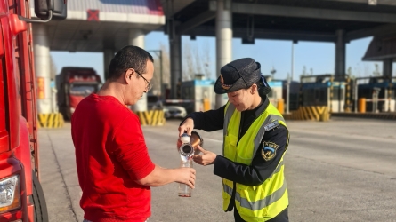 10月15日上午7時(shí)30分許,一輛運(yùn)輸鴨蛋的二軸貨車(chē)緩緩駛?cè)牒馑召M(fèi)站綠通專(zhuān)用通道,司機(jī)申請(qǐng)綠通免費(fèi)通行。查驗(yàn)人員立即按照工作流程上前,對(duì)車(chē)輛進(jìn)行細(xì)致查驗(yàn)[詳細(xì)]
