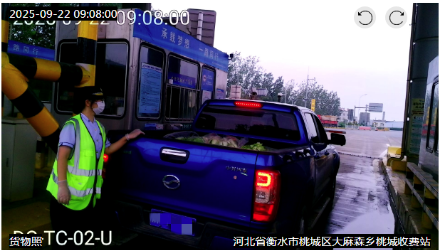 9月8日22:22,一輛黃牌二軸貨車駛?cè)胩页鞘召M(fèi)站9車道。司機(jī)告知車上裝載貨物為新鮮大棗,申請驗(yàn)貨并享受綠通免費(fèi)通行政策,驗(yàn)貨員立即依規(guī)對貨物進(jìn)行查驗(yàn)。[詳細(xì)]