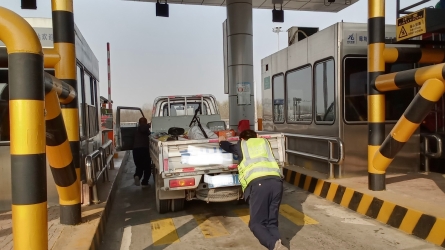 2026年3月25日晚9時(shí)許,一輛冀D牌照的綠通貨車(chē)駛?cè)胙嘟际召M(fèi)站出口綠通專(zhuān)用查驗(yàn)車(chē)道。因司機(jī)獨(dú)自作業(yè),遲遲不能將篷布打開(kāi)進(jìn)行綠通查驗(yàn)。[詳細(xì)]