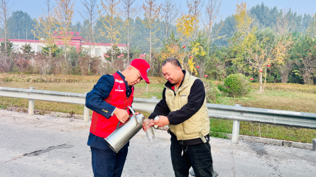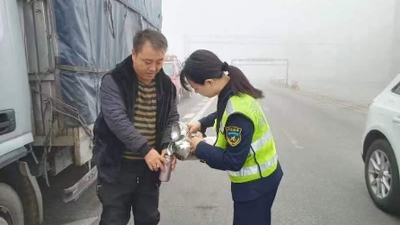 11月1日,齊心莊收費站凌晨北京方向入口、天津方向入口因大霧天氣臨時關閉,齊心莊收費站的工作人員便為等待的司乘人員提供了熱水。[詳細]