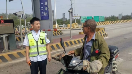 2024年9月18日10時(shí)許,一位中年男子騎著電動(dòng)車欲跟隨行汽車穿過升降欄桿駛?cè)敫咚俟?。千鈞一發(fā)之際,收費(fèi)員王蒙及時(shí)發(fā)現(xiàn),邊跑邊喊成功制止了該男子,并迅速攔在電動(dòng)車前。[詳細(xì)]