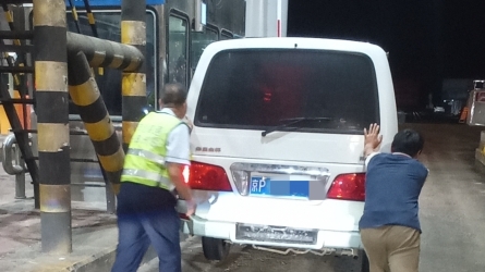 8月29日19:30,一輛小型客車駛?cè)胂愫游魇召M站出口車道,繳費完畢后,車輛突然熄火,司機嘗試啟動后無果,向收費員求助,收費員立即將該情況上報班長。班長趕到后,與司機師傅合力將車輛推至收費廣場安全區(qū)域。[詳細]