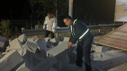 2024年4月15日21時許,一輛運輸泡沫磚的六軸貨車駛?cè)肴幽鲜召M站,裝載的泡沫磚在過地泵時大量散落,司機尚未發(fā)覺仍正常駛向收費站入口。[詳細(xì)]