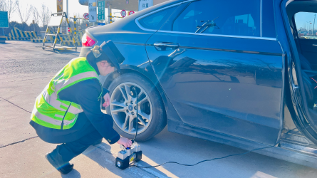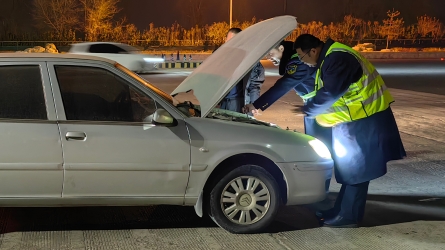 1月29日21時(shí)16分,一輛小型客車?yán)U費(fèi)完畢駛出收費(fèi)車道后,緩緩?fù)?吭谑召M(fèi)廣場路邊。司機(jī)一臉焦急,下車查看發(fā)現(xiàn)后輪輪胎虧氣嚴(yán)重,無法繼續(xù)行駛。班長見狀,快步走到車旁,關(guān)切地詢問司機(jī)情況。[詳細(xì)]