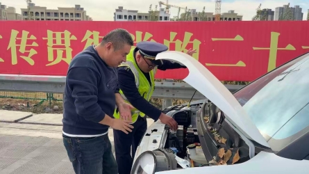 2025-01-09 11:00:531月4日晚7點(diǎn)10分,石家莊保通保暢應(yīng)急大隊(duì)隊(duì)員張曉飛和張國(guó)偉處理事故救援返回途中發(fā)現(xiàn)一輛小客車閃著雙閃??吭谇鄭u方向K575公里處的應(yīng)急車道中,兩人判斷此車有異常情況,于是緊急靠邊停車后上前詢問(wèn),該車輛因左...[詳細(xì)]