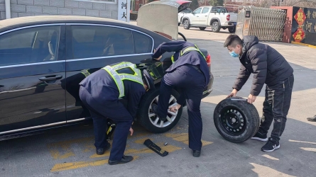 和司機一起從后備箱取出備胎,進行更換。在更換過程中,班長蘇雪峰邊操作邊給司乘朋友講解換車胎的方法技巧,還不忘告訴司乘朋友:“備胎不能長時間行駛,在到達目的地以后,要盡快去修理廠補胎更換回來。今后如在高...[詳細]