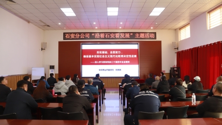 4月16日,石安分公司舉辦2024年“支部書記擂臺(tái)賽”第一期專題輔導(dǎo)。分公司黨委書記陳園明作開(kāi)班講話,所屬黨支部書記及各黨支部黨務(wù)工作者80余人參加。[詳細(xì)]