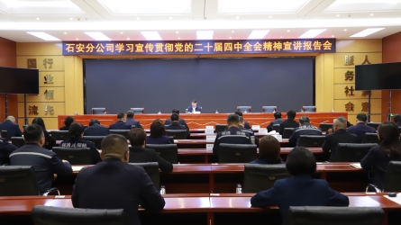 11月26日,石安分公司黨委召開學習宣傳貫徹黨的二十屆四中全會精神宣講報告會。分公司黨委書記陳園明作宣講報告,領導班子成員、紀委副書記,各單位、各部室負責人、總部全體黨員及職工代表共300余人在主、分會場參...[詳細]