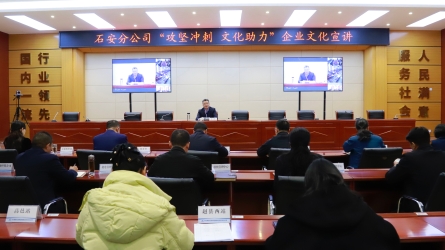 12月11日,石安分公司組織“攻堅沖刺 文化助力”企業(yè)文化宣講。石安分公司副總經(jīng)理陳東坡主持宣講會,分公司領(lǐng)導(dǎo)班子成員參加。 此次宣講,分公司企業(yè)大使結(jié)合分公司工作實際及《企業(yè)文化執(zhí)行手冊》內(nèi)容,分版塊對同...[詳細(xì)]